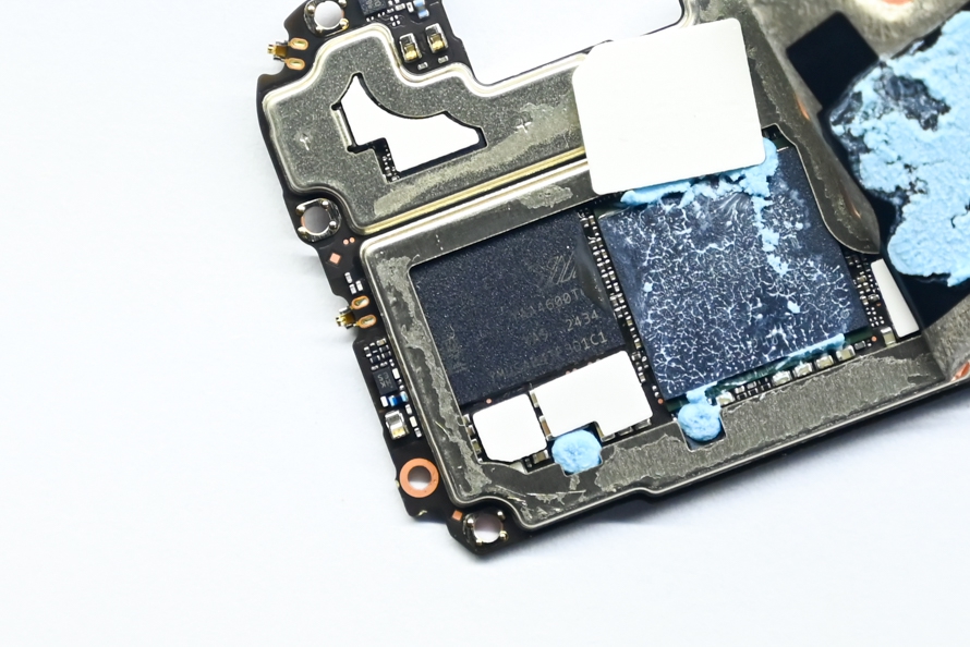 通过对OPPO Reno 14的拆机可以发现,长江存储的这款闪存被OPPO安装在了天玑8350处理器的旁边,仔细看还是可以看出长江存储的LOGO。可以看到OPPO Reno 14的元器件布局还是相当紧凑,OPPO也准备了散热单元满足手机在游玩游戏时候的散热需求。